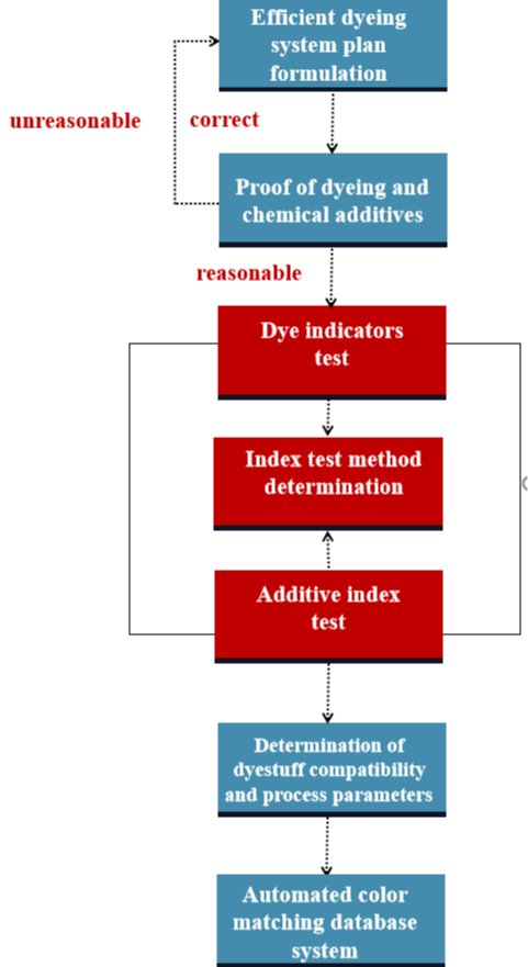 The establishment of dyeing database system ensures the dyeing stability, compatibility and reproducibility of dyes and auxiliaries from the source, lays a foundation for improving the dyeing success rate, and to a certain extent, reduces the production error rate, improves the production efficiency and saves the production cost of enterprises.