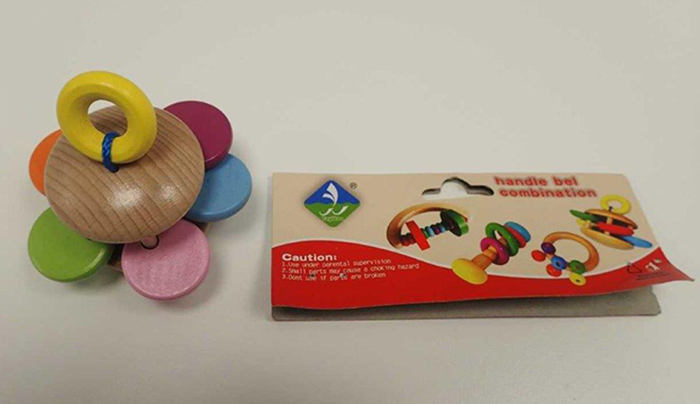 Risk details: Small parts (the bell and the two wooden discs) may easily detach from the toy.A small child may put them in the mouth and choke on them.
