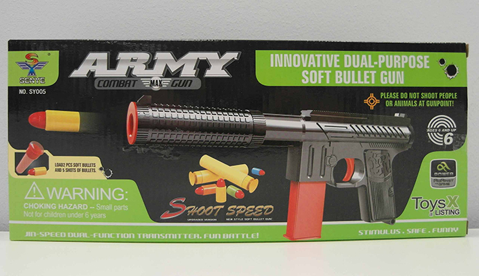 Details of risk: The kinetic energy of the projectiles fired from the toy gun is too high which can lead to eye injuries.