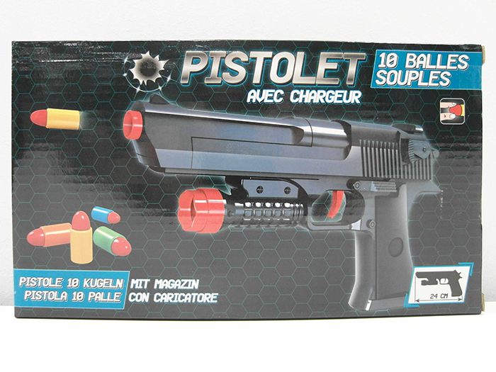 Risk details: The kinetic energy of the projectiles fired from the toy gun is too high which can lead to eye injuries.